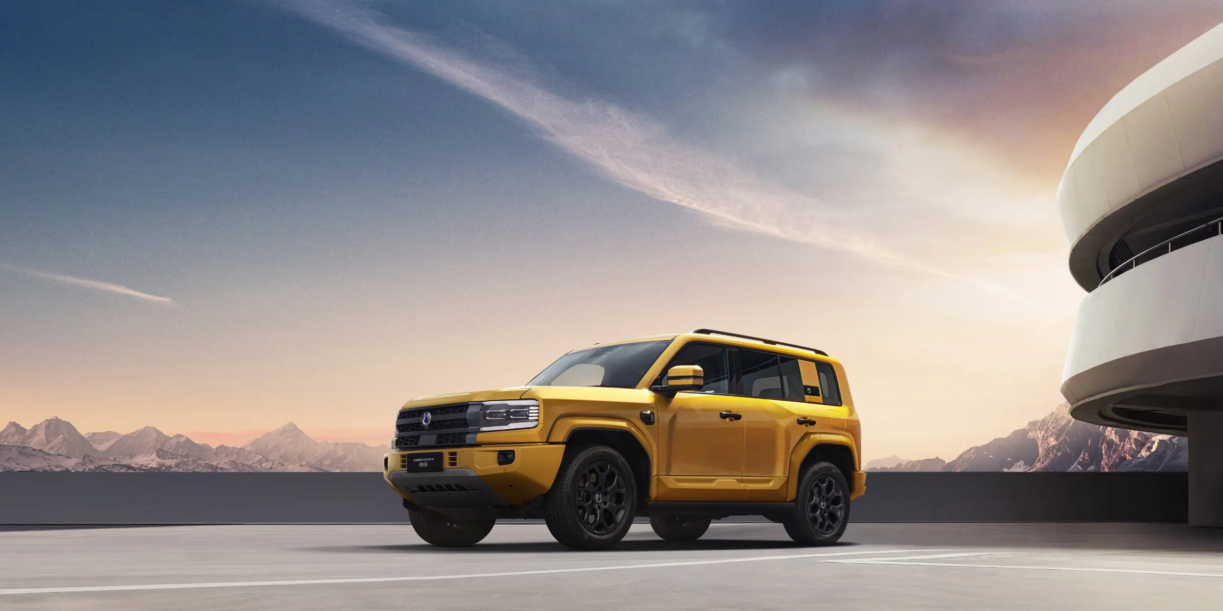O Denza B5 tem tração integral sob demanda com dois motores elétricos, sendo um em cada eixo, e a plataforma DMO (Dual Mode Off-Road) com 16 modos de condução. É um dos únicos SUVs híbridos plug-in do mercado com capacidade off-road testada em terrenos adversos.